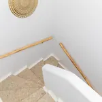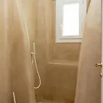 De har badeværelser med en bruser, en hårtørrer og håndklæder.